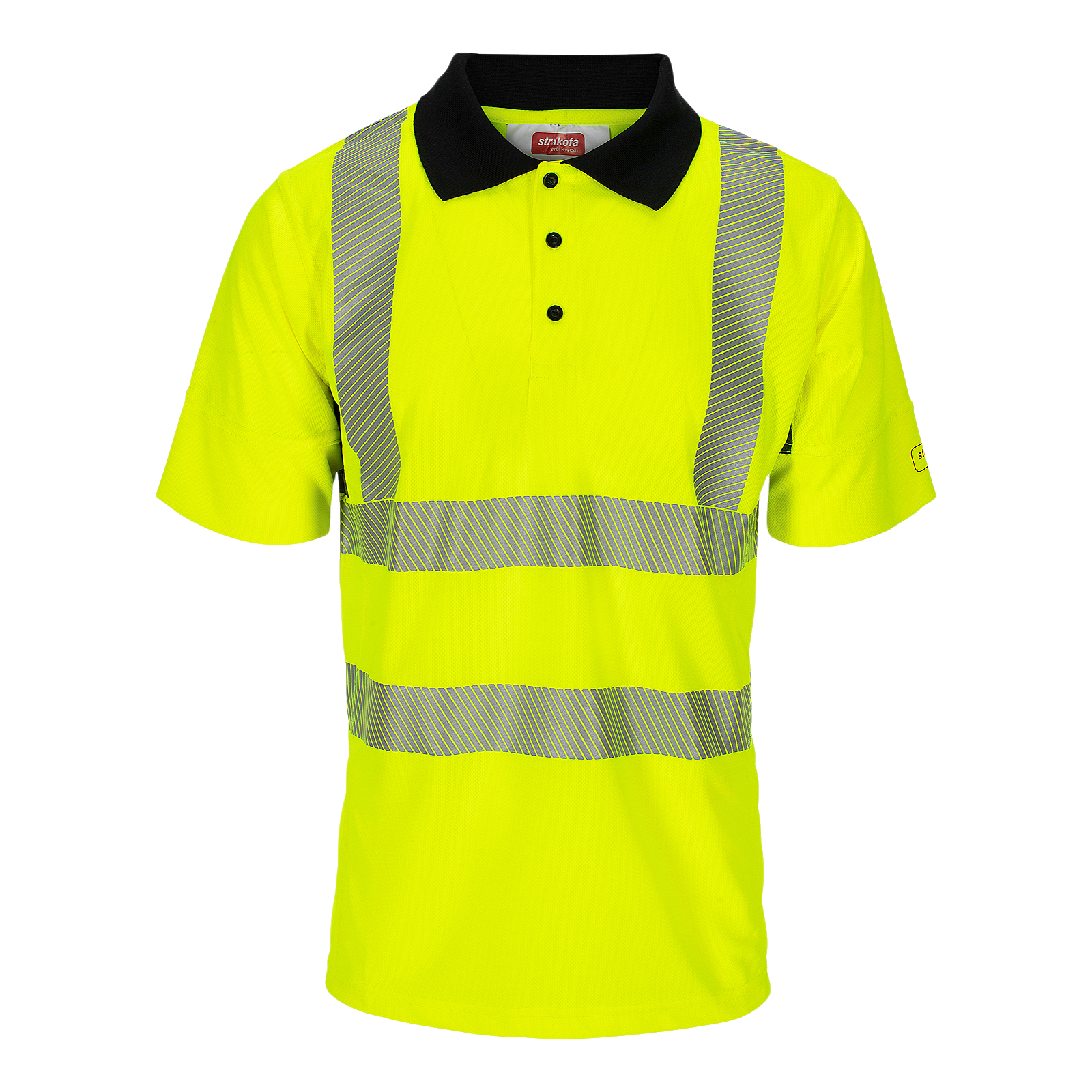 Dette er en kortermet pikéskjorte som er sertifisert i henhold til kravene for synlig bekledning i klasse 2. T-skjorten har mesh under erme og rund hals med krage og knappeåpning.
