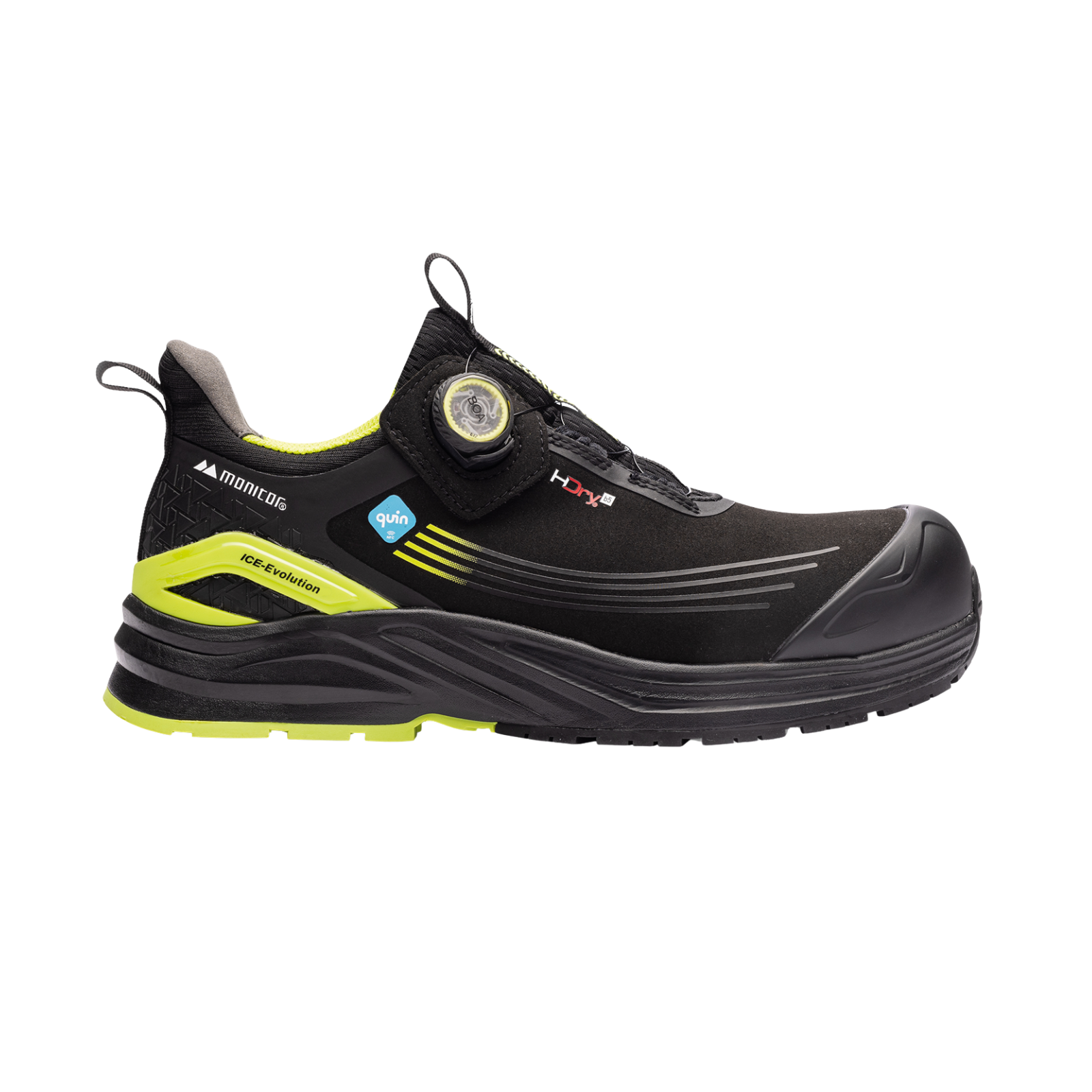 ICE Evolution Flow fra Monitor er en vanntett og høyteknologisk vernesko som kombinerer maksimal komfort og sikkerhet. Den har NFC-brikke fra Quin for nødinformasjon, BOA® Fit System Li2 for presis passform og Monitor Return™-såleteknologi med Super Critical Foam for overlegen demping og energiretur.