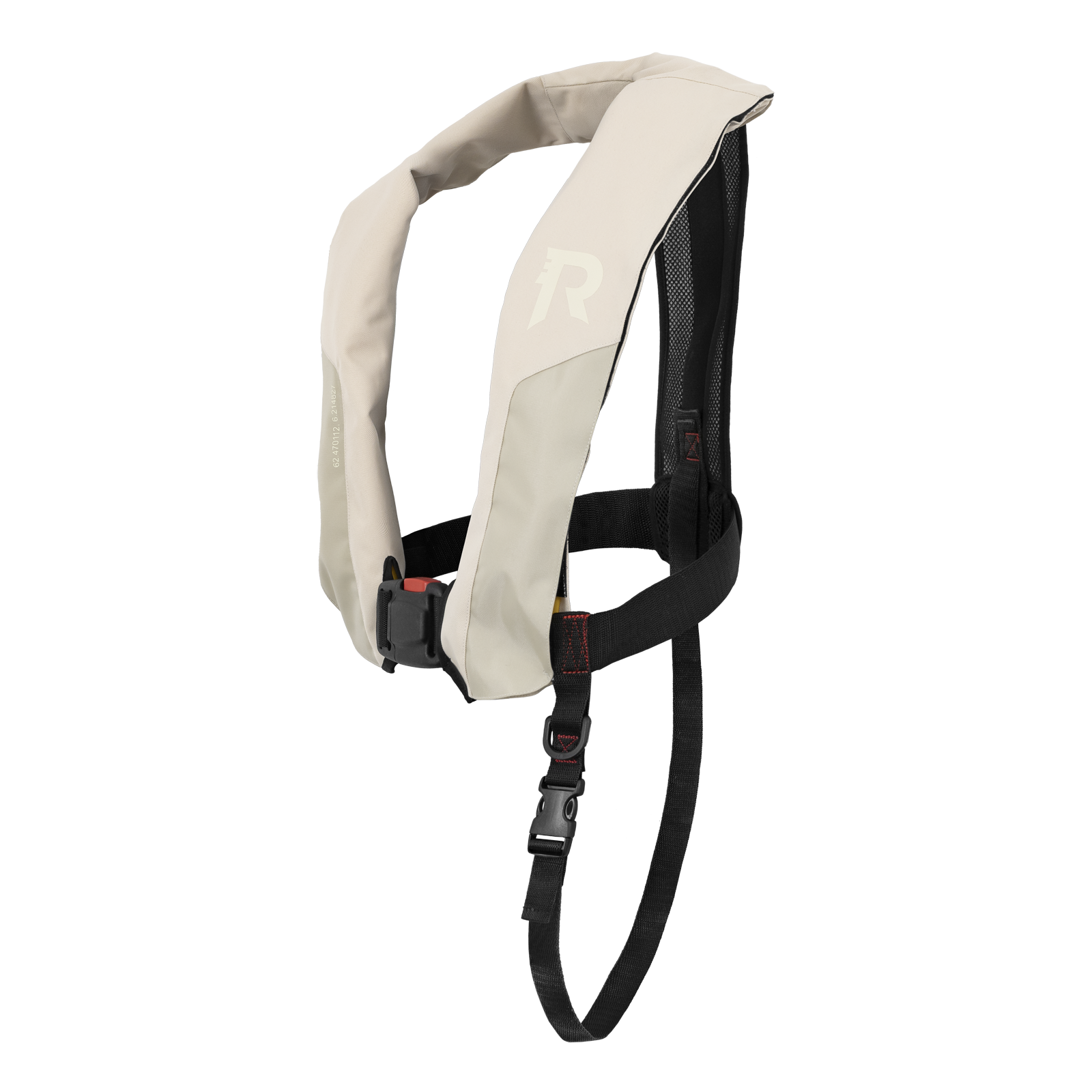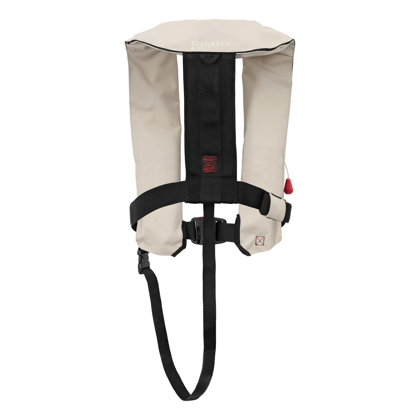 Den er laget i slitesterke materialer og har ryggpanel i mesh for økt komfort. Vesten har belte med en solid spenne i front, samt en justerbar skrittstropp. Sistnevnte sørger for at vesten ikke sklir over hodet hvis du faller i vannet og den blåses opp.