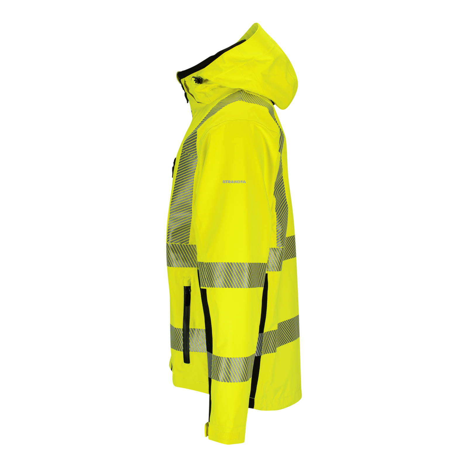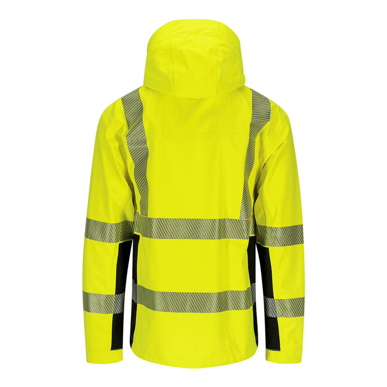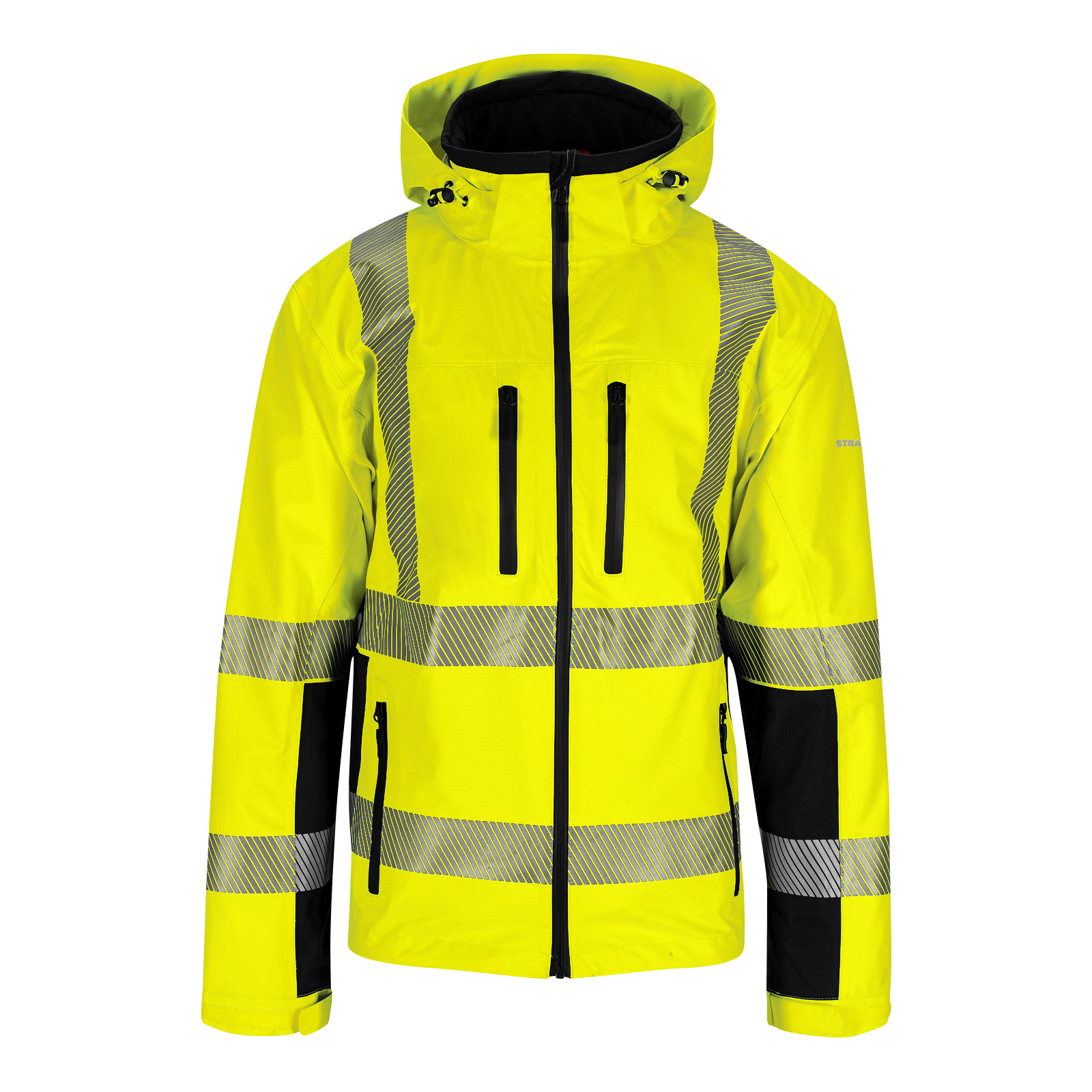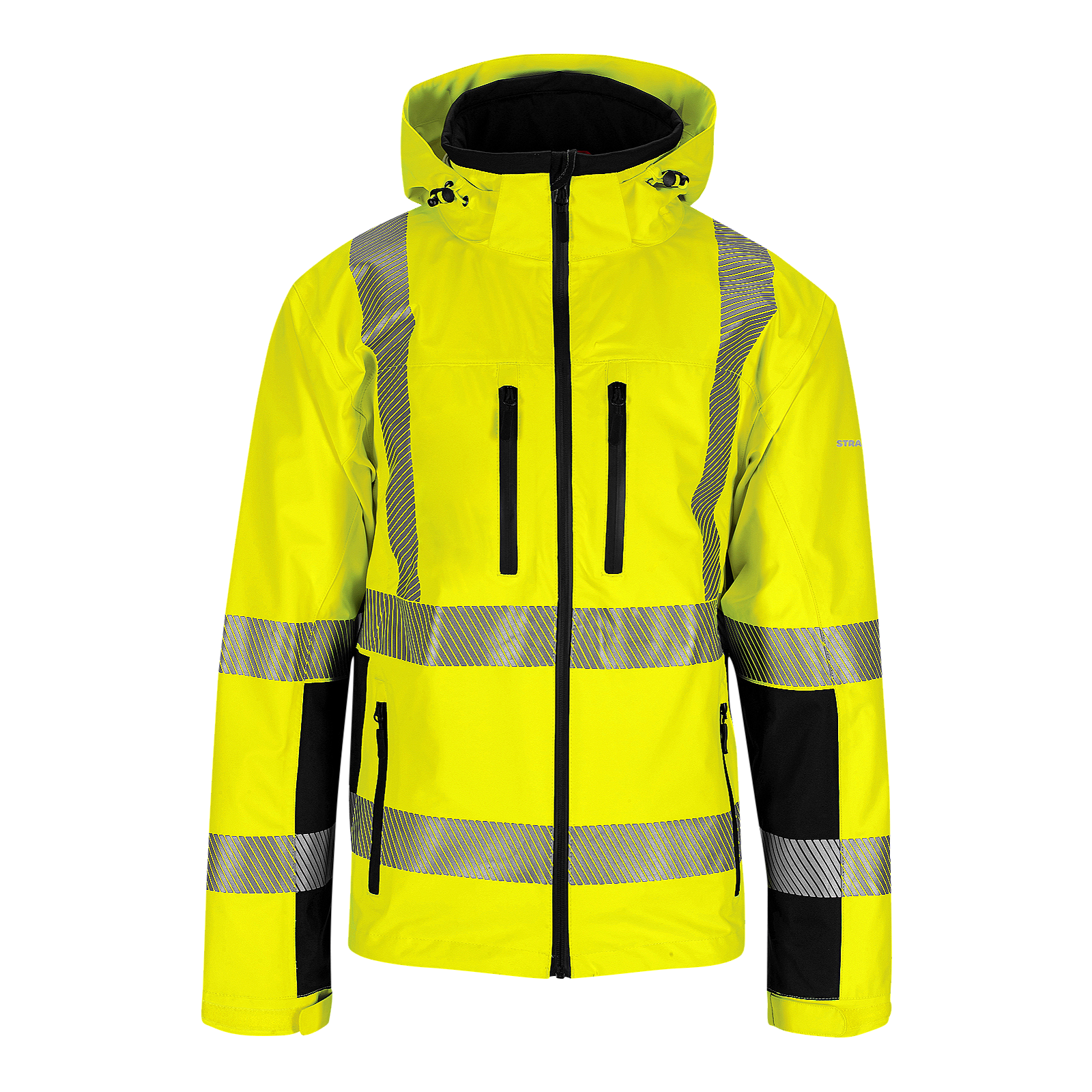Denne skalljakken fra Synlig Plus-serien er laget i en pustende og vindtett 3-lagskvalitet, og den er i tillegg vanntett (10 000 mm). Mengden fluoriserende materiale og refleks gjør at den også er sertifisert som synlig bekledning.