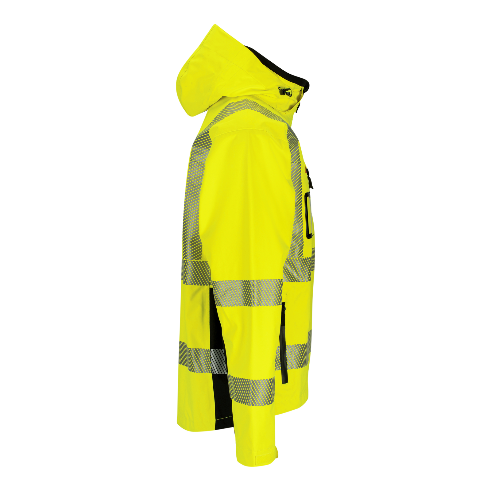 Jakken er formsydd og har forlenget rygg, vannavstøtende glidelås i front, og brystlomme med ID-lomme og vannavstøtende glidelås.