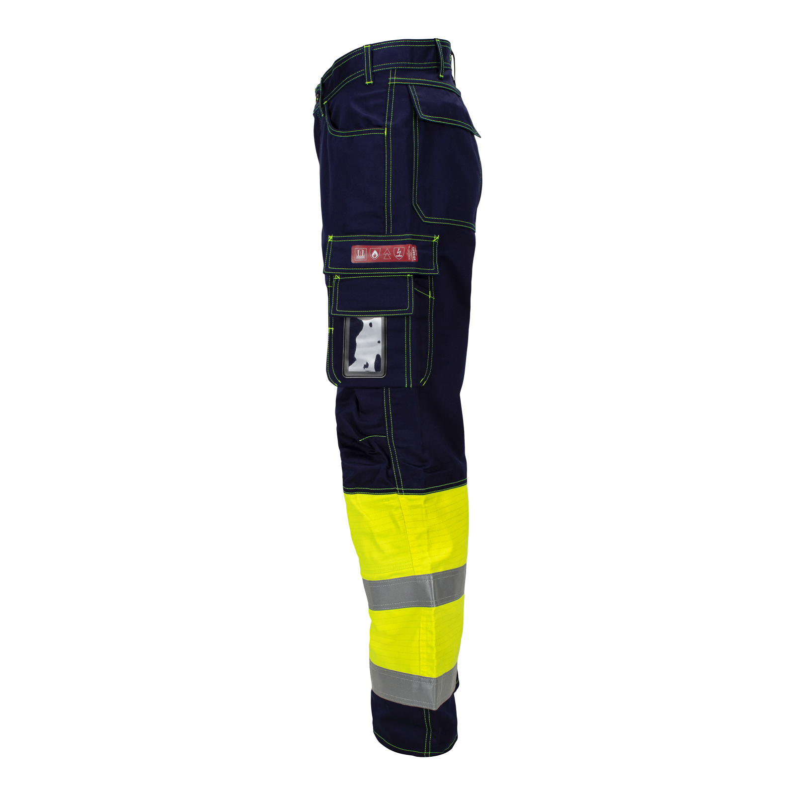 Den har høy slitestyrke og jeansfasong, og er både antistatisk og flammehemmende. Buksen er også sertifisert i henhold til IEC 61482-2 Lysbue og ISO 20471 for synlighet (klasse 1).