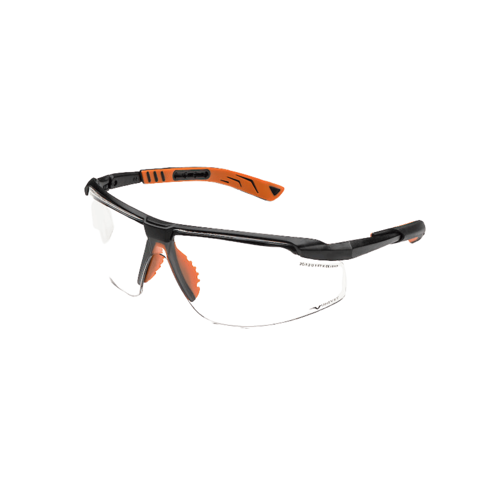 Rammen i svart/oransje har justerbare stenger i både lengde og vinkel, samt SoftPad for økt komfort gjennom hele dagen. Sertifisert etter EN166 og EN170 (2C-1.2).